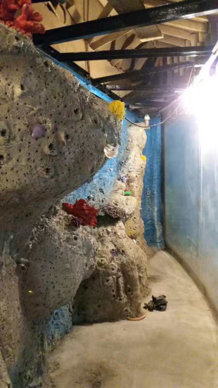 制作仿真珊瑚礁巖目前應用最多的是兩種方法:一種是采用水泥砂石堆砌造型,面層仿真處理。這種方法的特點(diǎn)是造價(jià)較低,造型隨意;缺點(diǎn)是自重很重,對建筑承載力要求較高,放水泡缸時(shí)間要求很長(cháng),對水質(zhì)的影響較大,只有一部分場(chǎng)館采用這種方法。另一種方法是采用真實(shí)珊瑚礁玻璃鋼翻模的方法,這種方法的特點(diǎn)是:表現力真實(shí)細膩,生態(tài)環(huán)保自重輕,對建筑物承載力無(wú)過(guò)高要求:缺點(diǎn)是造價(jià)相對第一種高。大多數場(chǎng)館采用這用造景方式,實(shí)踐證明,第二種方法雖然初始投資高了些,但效果好,加上材料結實(shí)耐用,長(cháng)期使用維護成本低,綜合經(jīng)濟指標比第一種方法要好,所以受到了大部分客戶(hù)的歡迎。